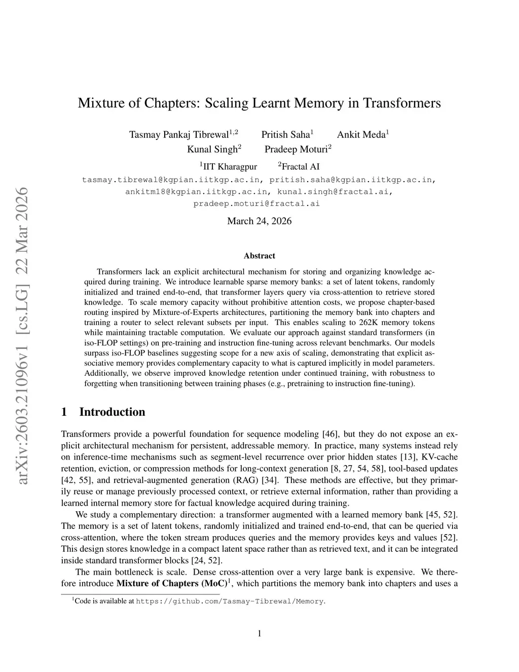Mixture of Chapters: Scaling Learnt Memory in Transformers