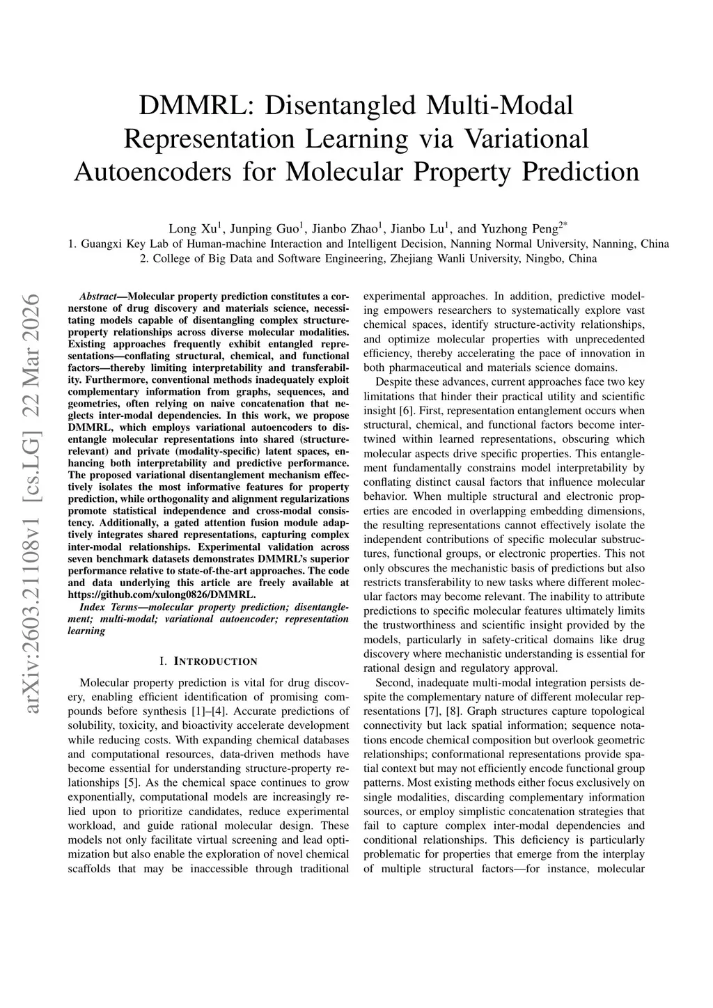 DMMRL: Disentangled Multi-Modal Representation Learning via Variational Autoencoders for Molecular Property Prediction