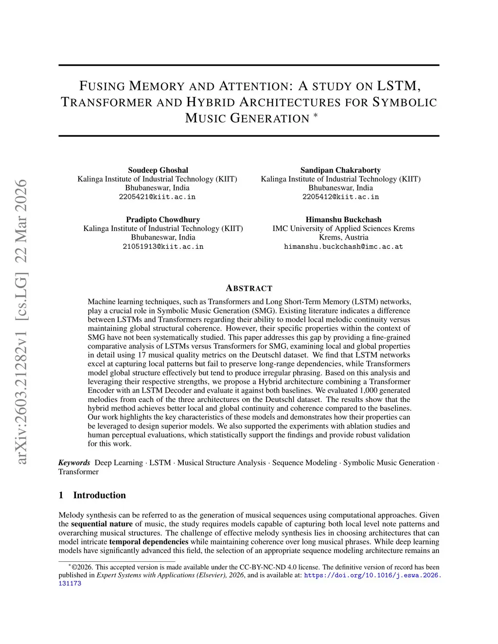 Fusing Memory and Attention: A study on LSTM, Transformer and Hybrid Architectures for Symbolic Music Generation