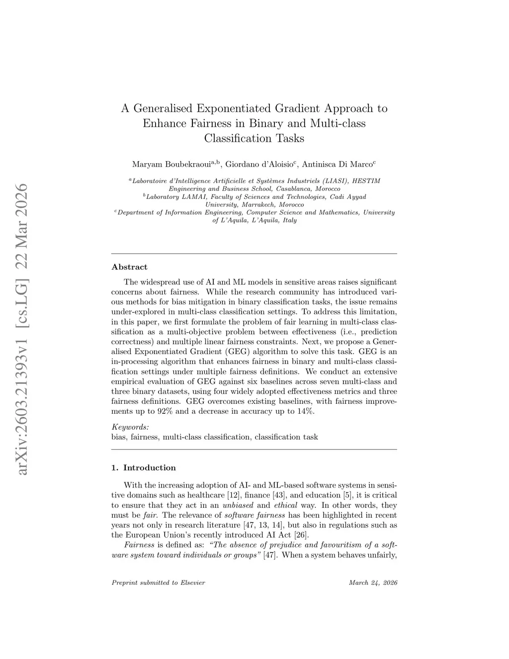 A Generalised Exponentiated Gradient Approach to Enhance Fairness in Binary and Multi-class Classification Tasks