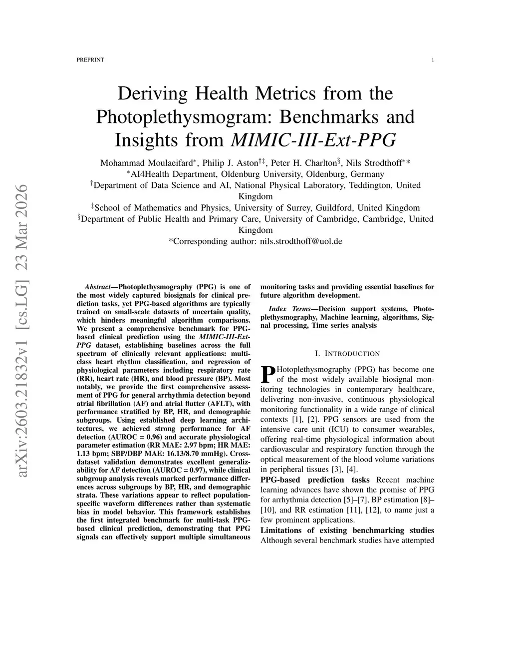 Deriving Health Metrics from the Photoplethysmogram: Benchmarks and Insights from MIMIC-III-Ext-PPG