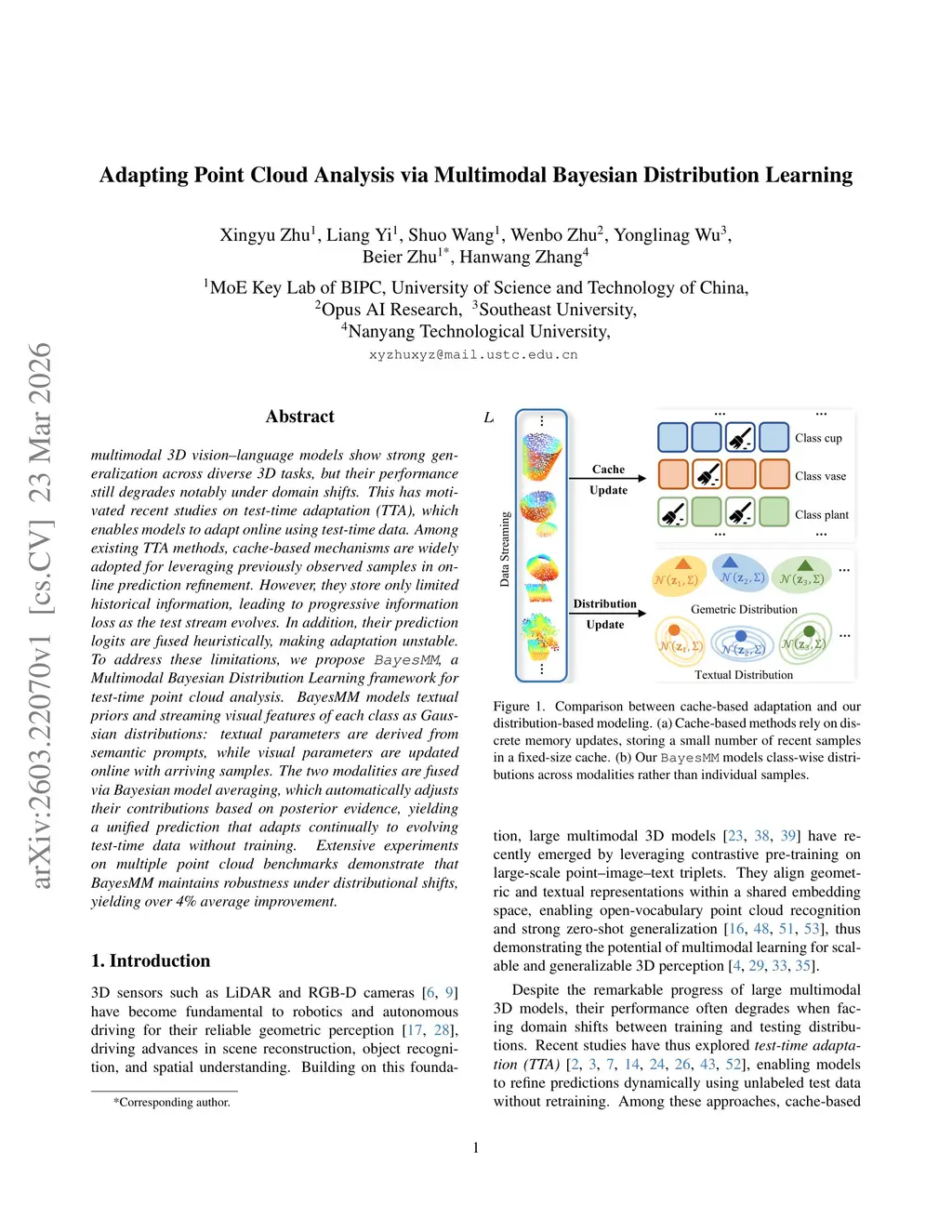 Adapting Point Cloud Analysis via Multimodal Bayesian Distribution Learning