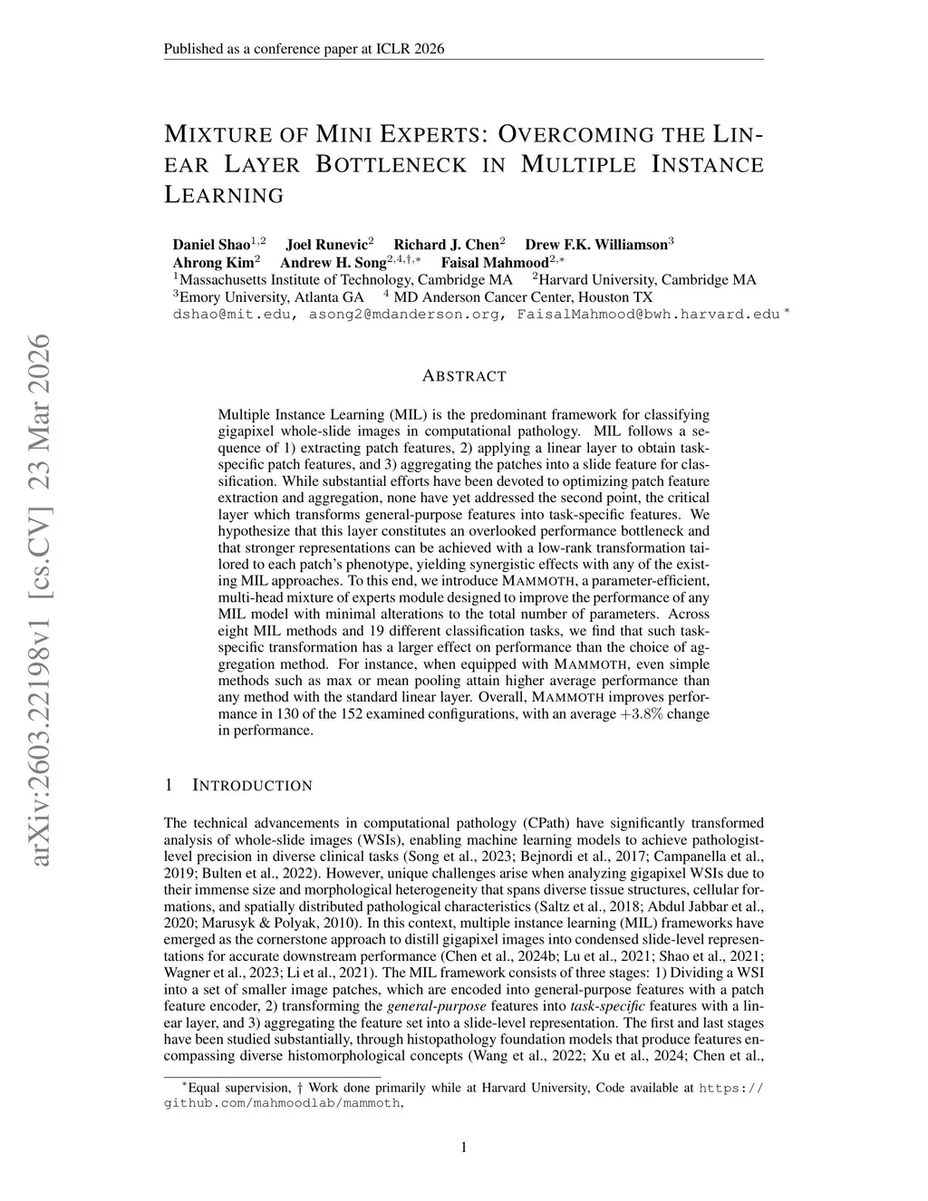 Multiple Instance Learning (MIL) is the predominant framework for classifying gigapixel whole-slide images in computational pathology. MIL follows a sequence of 1) extracting patch features, 2) applying a linear layer to obtain task-specific patch features, and 3) aggregating the patches into a slide feature for classification. While substantial efforts have been devoted to optimizing patch feature extraction and aggregation, none have yet addressed the second point, the critical layer which transforms general-purpose features into task-specific features. We hypothesize that this layer constitutes an overlooked performance bottleneck and that stronger representations can be achieved with a low-rank transformation tailored to each patch's phenotype, yielding synergistic effects with any of the existing MIL approaches. To this end, we introduce MAMMOTH, a parameter-efficient, multi-head mixture of experts module designed to improve the performance of any MIL model with minimal alterations to the total number of parameters. Across eight MIL methods and 19 different classification tasks, we find that such task-specific transformation has a larger effect on performance than the choice of aggregation method. For instance, when equipped with MAMMOTH, even simple methods such as max or mean pooling attain higher average performance than any method with the standard linear layer. Overall, MAMMOTH improves performance in 130 of the 152 examined configurations, with an average change in performance. Code is available atthis https URL.