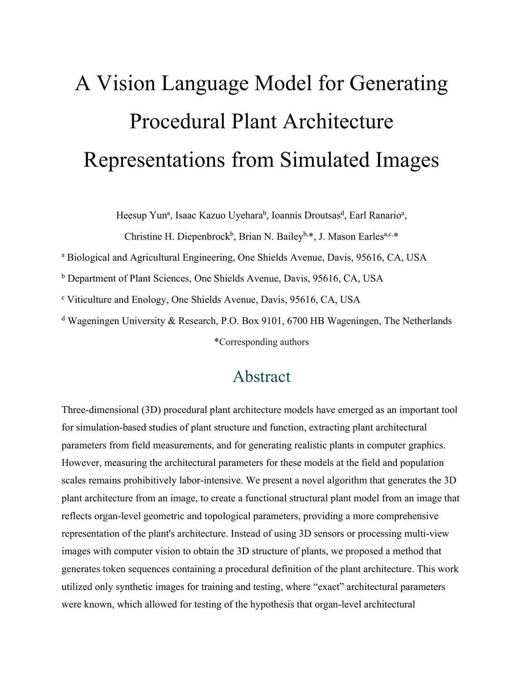 A Vision Language Model for Generating Procedural Plant Architecture Representations from Simulated Images