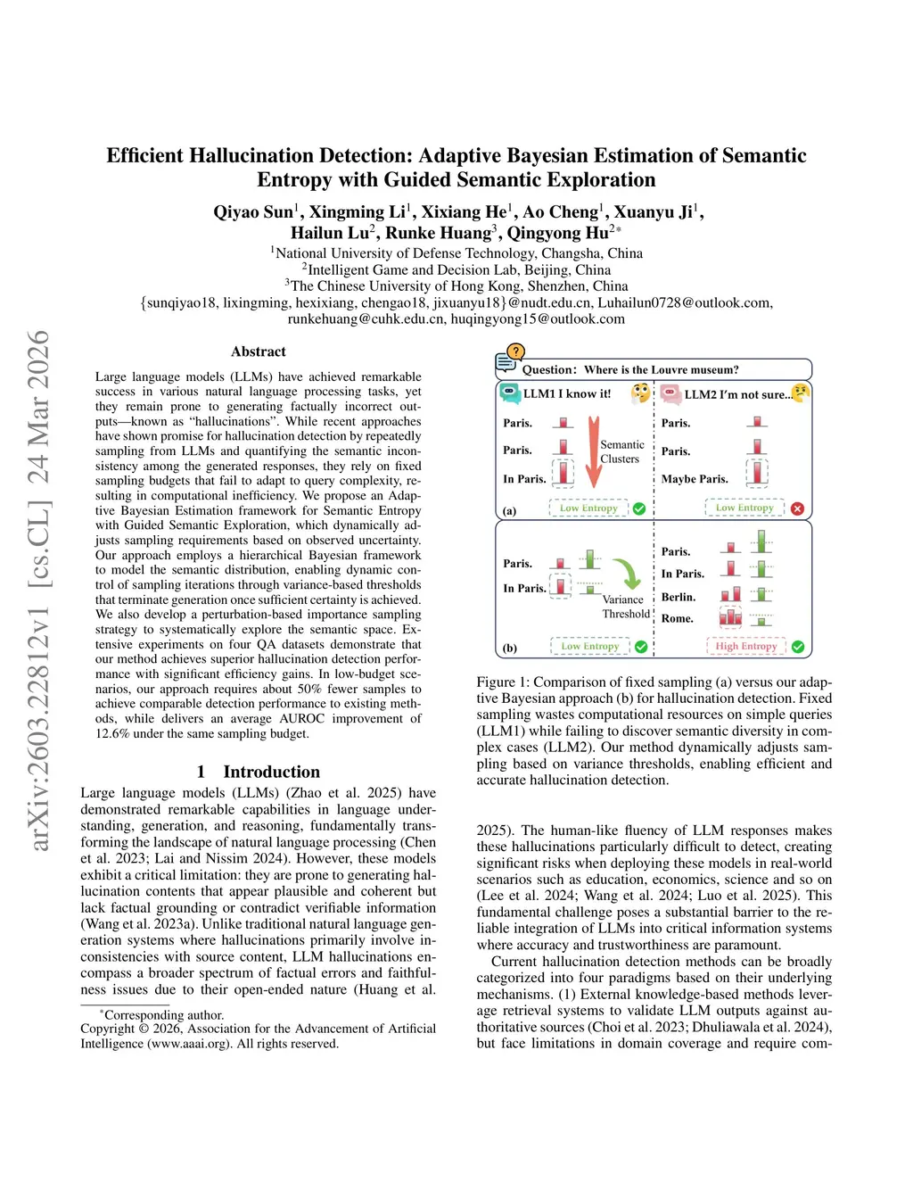 Efficient Hallucination Detection: Adaptive Bayesian Estimation of Semantic Entropy with Guided Semantic Exploration