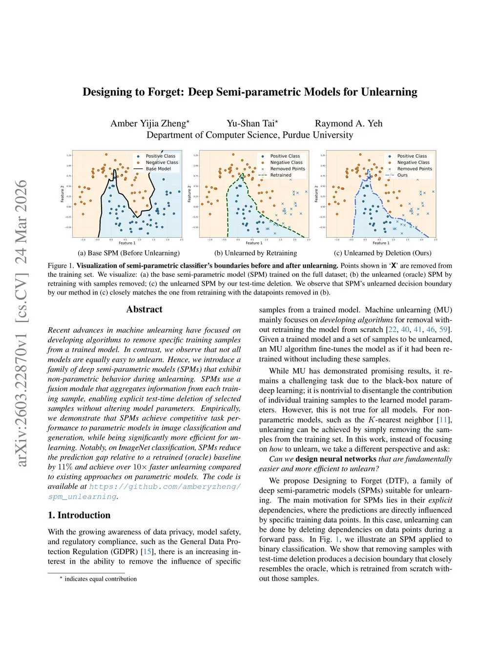 Designing to Forget: Deep Semi-parametric Models for Unlearning