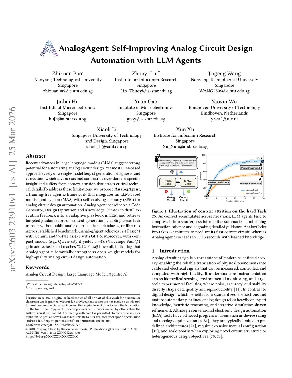 AnalogAgent: Self-Improving Analog Circuit Design Automation with LLM Agents