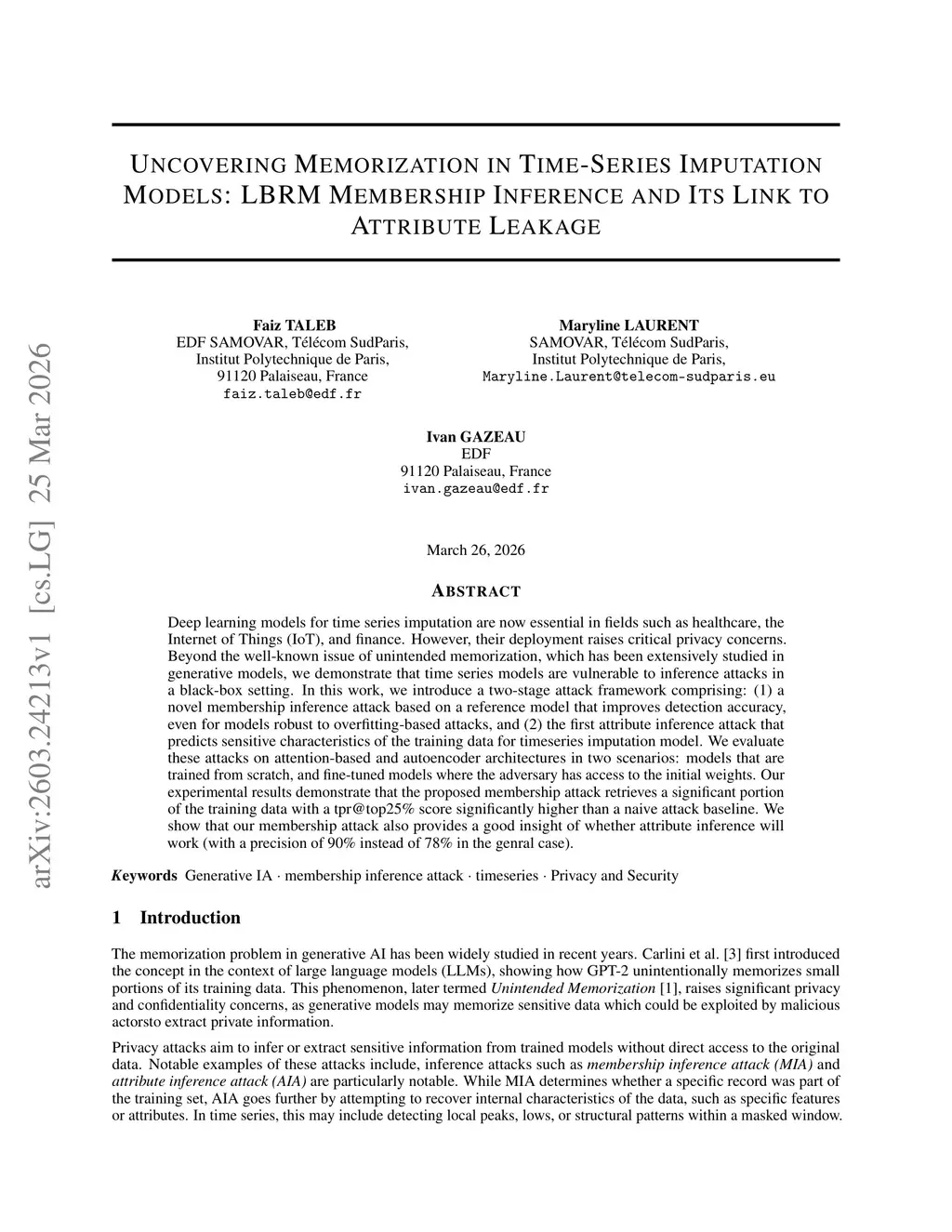 Uncovering Memorization in Timeseries Imputation models: LBRM Membership Inference and its link to attribute Leakage