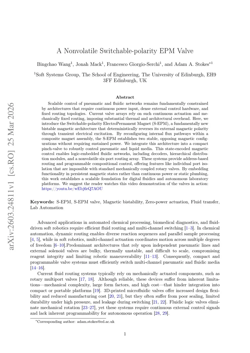 Scalable control of pneumatic and fluidic networks remains fundamentally constrained by architectures that require continuous power input, dense external control hardware, and fixed routing topologies. Current valve arrays rely on such continuous actuation and mechanically fixed routing, imposing substantial thermal and architectural overhead. Here, we introduce the Switchable-polarity ElectroPermanent Magnet (S-EPM), a fundamentally new bistable magnetic architecture that deterministically reverses its external magnetic polarity through transient electrical excitation. By reconfiguring internal flux pathways within a composite magnet assembly, the S-EPM establishes two stable, opposing magnetic configurations without requiring sustained power. We integrate this architecture into a compact pinch-valve to robustly control pneumatic and liquid media. This state-encoded magnetic control enables logic-embedded fluidic networks, including decoders, hierarchical distribution modules, and a nonvolatile six-port routing array. These systems provide address-based routing and programmable compositional control, offering features like individual port isolation that are impossible with standard mechanically coupled rotary valves. By embedding functionality in persistent magnetic states rather than continuous power or static plumbing, this work establishes a scalable foundation for digital fluidics and autonomous laboratory platforms.