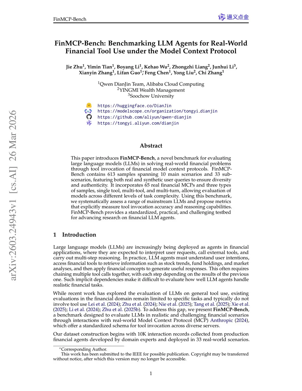 FinMCP-Bench: Benchmarking LLM Agents for Real-World Financial Tool Use under the Model Context Protocol