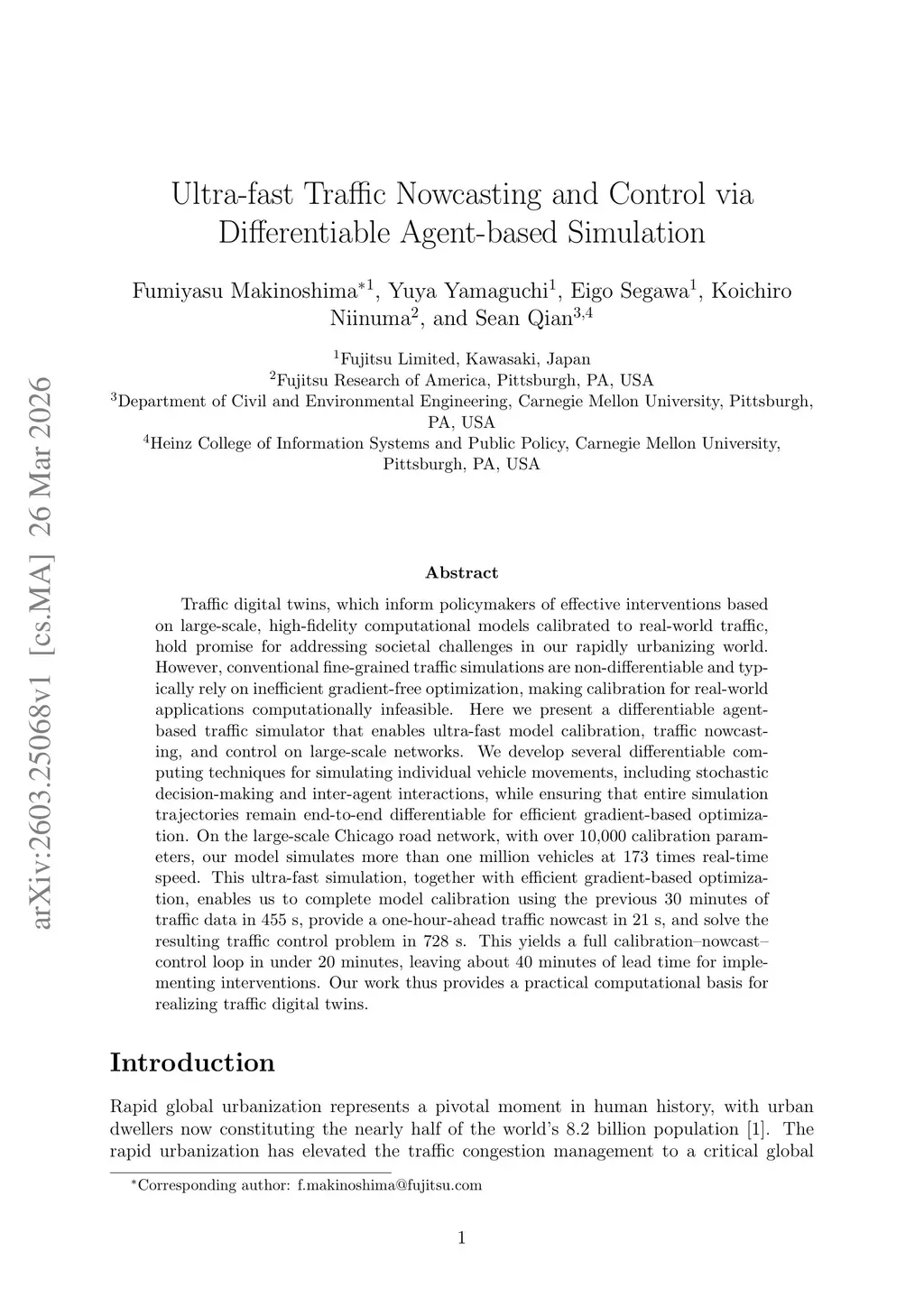 Ultra-fast Traffic Nowcasting and Control via Differentiable Agent-based Simulation