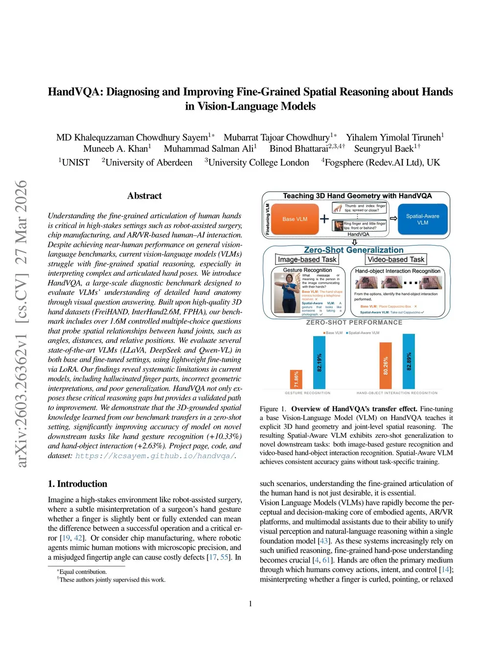 HandVQA: Diagnosing and Improving Fine-Grained Spatial Reasoning about Hands in Vision-Language Models