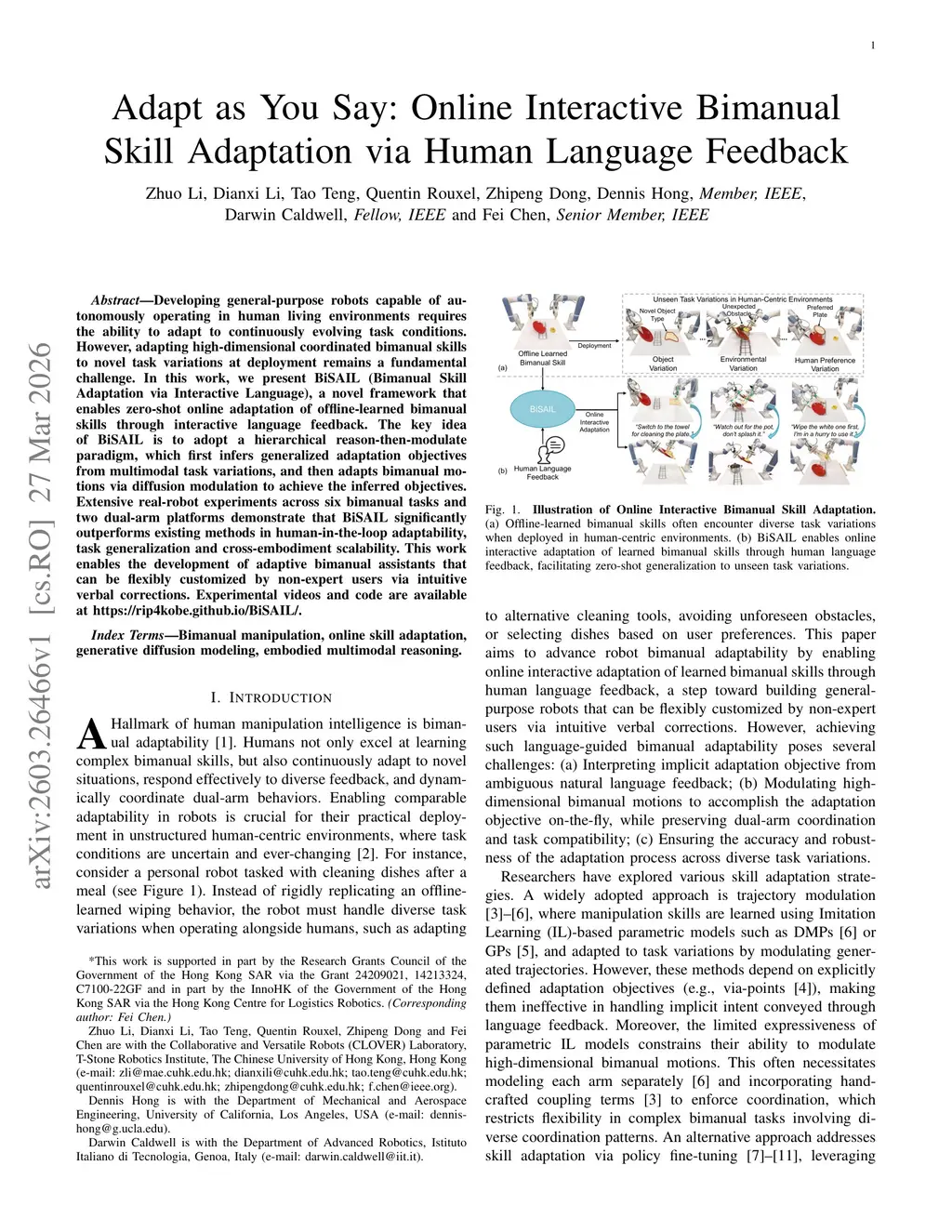 Adapt as You Say: Online Interactive Bimanual Skill Adaptation via Human Language Feedback
