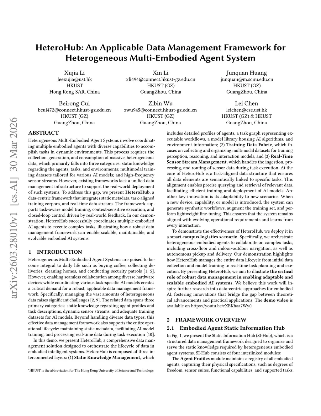 HeteroHub: An Applicable Data Management Framework for Heterogeneous Multi-Embodied Agent System