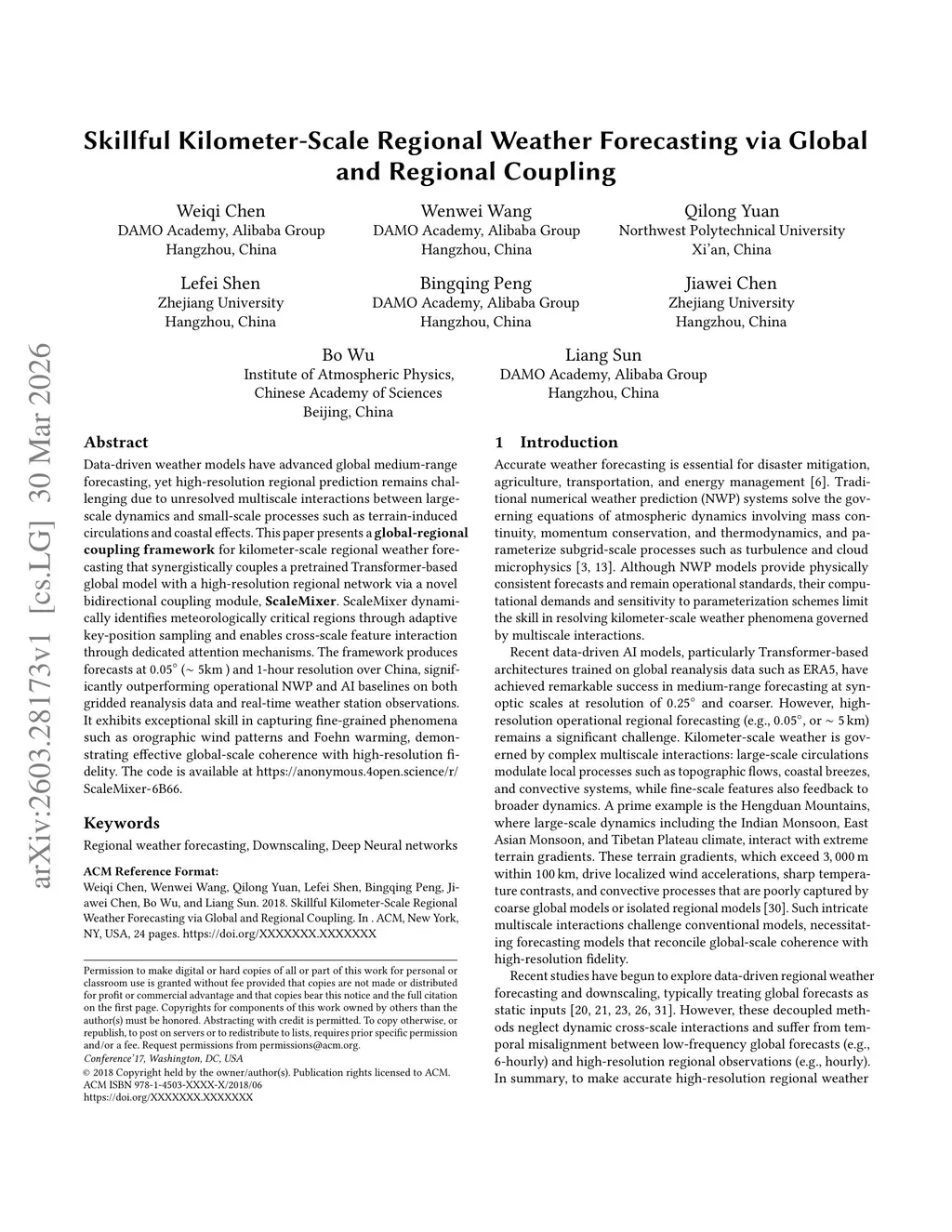 Data-driven weather models have advanced global medium-range forecasting, yet high-resolution regional prediction remains challenging due to unresolved multiscale interactions between large-scale dynamics and small-scale processes such as terrain-induced circulations and coastal effects. This paper presents a global-regional coupling framework for kilometer-scale regional weather forecasting that synergistically couples a pretrained Transformer-based global model with a high-resolution regional network via a novel bidirectional coupling module, ScaleMixer. ScaleMixer dynamically identifies meteorologically critical regions through adaptive key-position sampling and enables cross-scale feature interaction through dedicated attention mechanisms. The framework produces forecasts at ( ) and 1-hour resolution over China, significantly outperforming operational NWP and AI baselines on both gridded reanalysis data and real-time weather station observations. It exhibits exceptional skill in capturing fine-grained phenomena such as orographic wind patterns and Foehn warming, demonstrating effective global-scale coherence with high-resolution fidelity. The code is available atthis https URL.