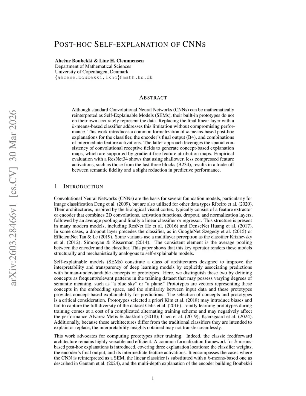 Although standard Convolutional Neural Networks (CNNs) can be mathematically reinterpreted as Self-Explainable Models (SEMs), their built-in prototypes do not on their own accurately represent the data. Replacing the final linear layer with a -means-based classifier addresses this limitation without compromising performance. This work introduces a common formalization of -means-based post-hoc explanations for the classifier, the encoder's final output (B4), and combinations of intermediate feature activations. The latter approach leverages the spatial consistency of convolutional receptive fields to generate concept-based explanation maps, which are supported by gradient-free feature attribution maps. Empirical evaluation with a ResNet34 shows that using shallower, less compressed feature activations, such as those from the last three blocks (B234), results in a trade-off between semantic fidelity and a slight reduction in predictive performance.