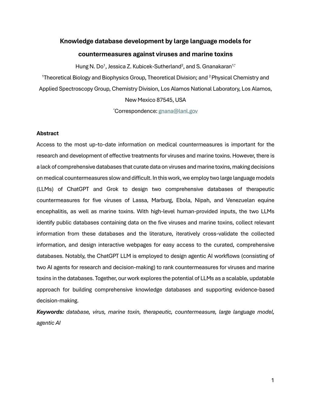 Knowledge database development by large language models for countermeasures against viruses and marine toxins