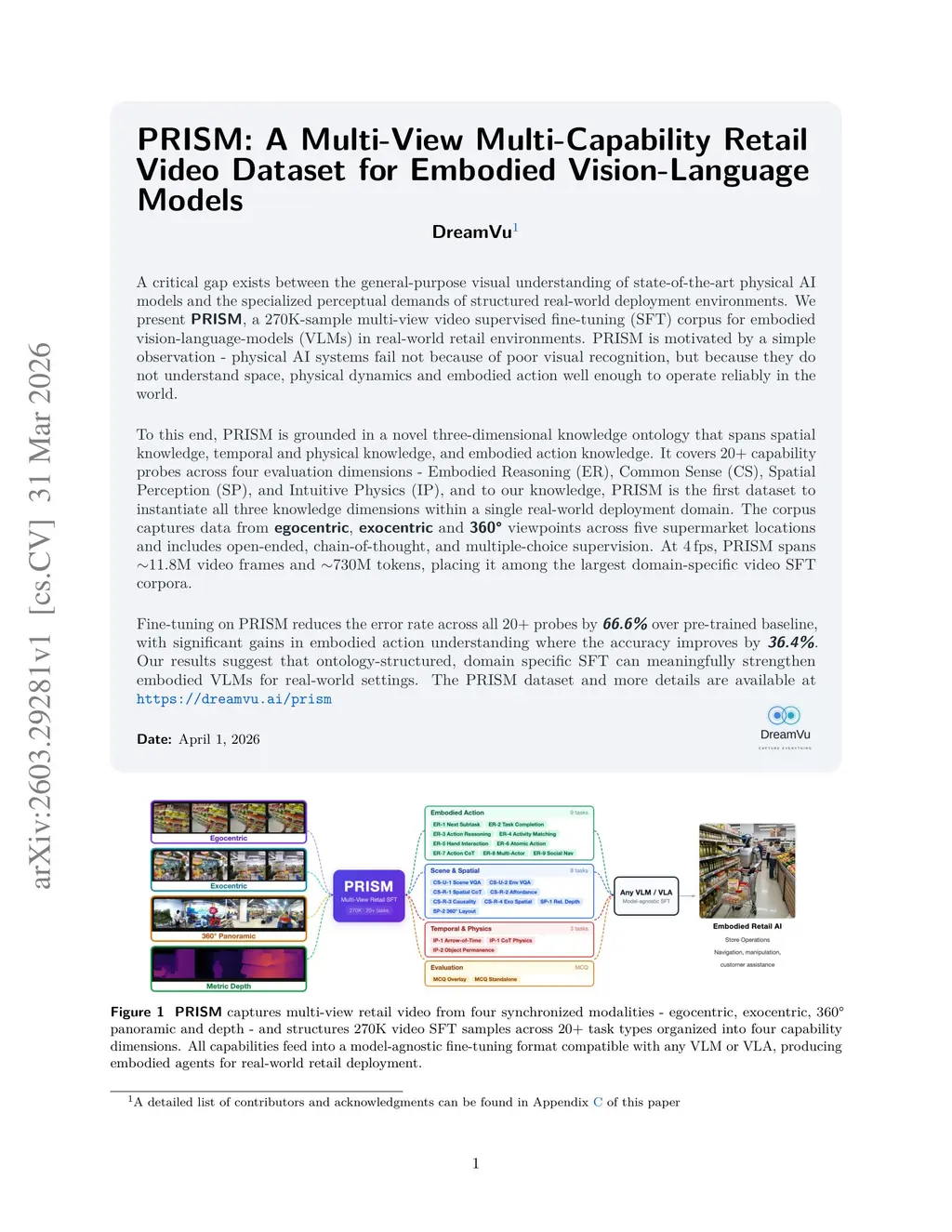 PRISM: A Multi-View Multi-Capability Retail Video Dataset for Embodied Vision-Language Models