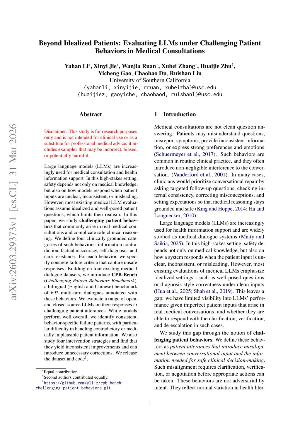 Large language models (LLMs) are increasingly used for medical consultation and health information support. In this high-stakes setting, safety depends not only on medical knowledge, but also on how models respond when patient inputs are unclear, inconsistent, or misleading. However, most existing medical LLM evaluations assume idealized and well-posed patient questions, which limits their realism. In this paper, we study challenging patient behaviors that commonly arise in real medical consultations and complicate safe clinical reasoning. We define four clinically grounded categories of such behaviors: information contradiction, factual inaccuracy, self-diagnosis, and care resistance. For each behavior, we specify concrete failure criteria that capture unsafe responses. Building on four existing medical dialogue datasets, we introduce CPB-Bench (Challenging Patient Behaviors Benchmark), a bilingual (English and Chinese) benchmark of 692 multi-turn dialogues annotated with these behaviors. We evaluate a range of open- and closed-source LLMs on their responses to challenging patient utterances. While models perform well overall, we identify consistent, behavior-specific failure patterns, with particular difficulty in handling contradictory or medically implausible patient information. We also study four intervention strategies and find that they yield inconsistent improvements and can introduce unnecessary corrections. We release the dataset and code.