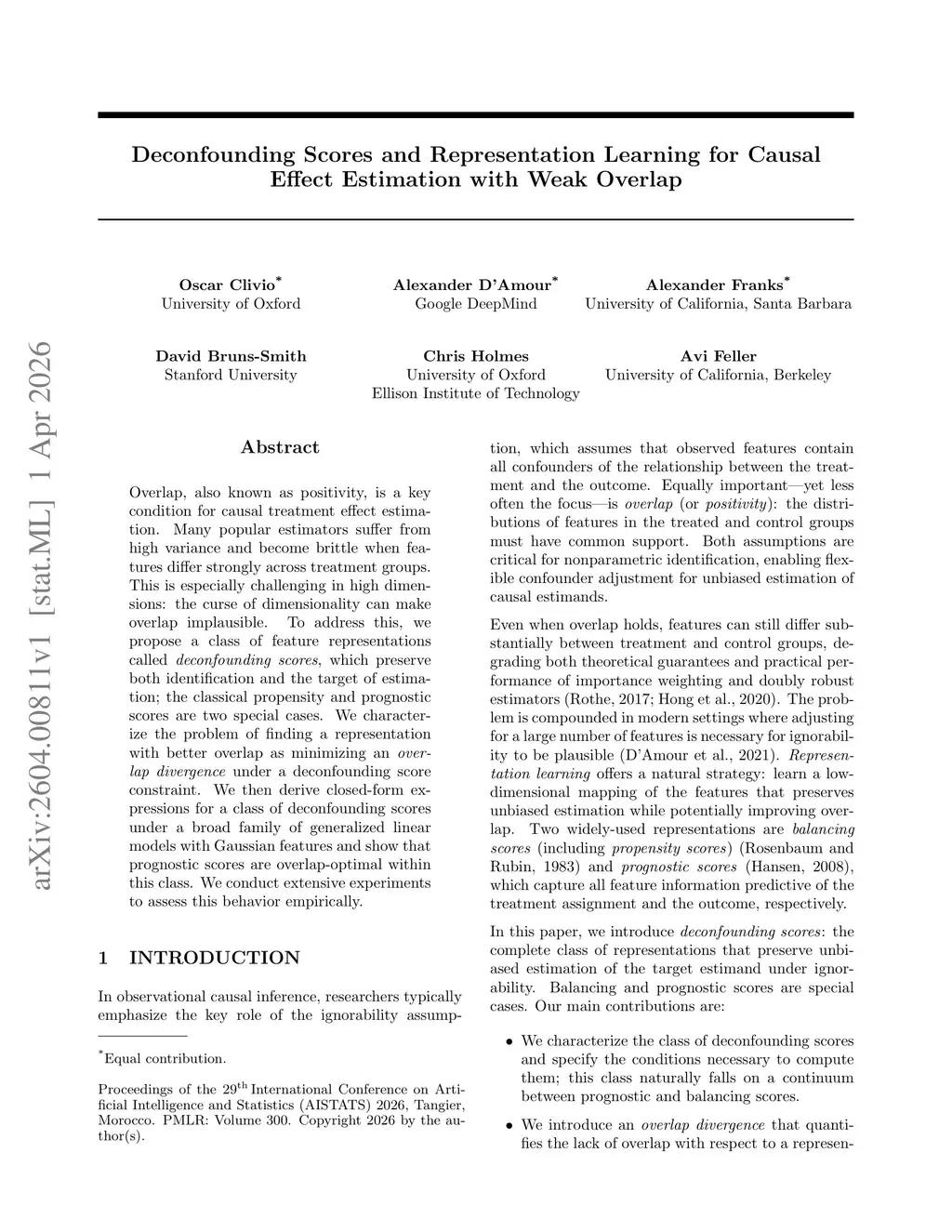 Overlap, also known as positivity, is a key condition for causal treatment effect estimation. Many popular estimators suffer from high variance and become brittle when features differ strongly across treatment groups. This is especially challenging in high dimensions: the curse of dimensionality can make overlap implausible. To address this, we propose a class of feature representations called deconfounding scores, which preserve both identification and the target of estimation; the classical propensity and prognostic scores are two special cases. We characterize the problem of finding a representation with better overlap as minimizing an overlap divergence under a deconfounding score constraint. We then derive closed-form expressions for a class of deconfounding scores under a broad family of generalized linear models with Gaussian features and show that prognostic scores are overlap-optimal within this class. We conduct extensive experiments to assess this behavior empirically.