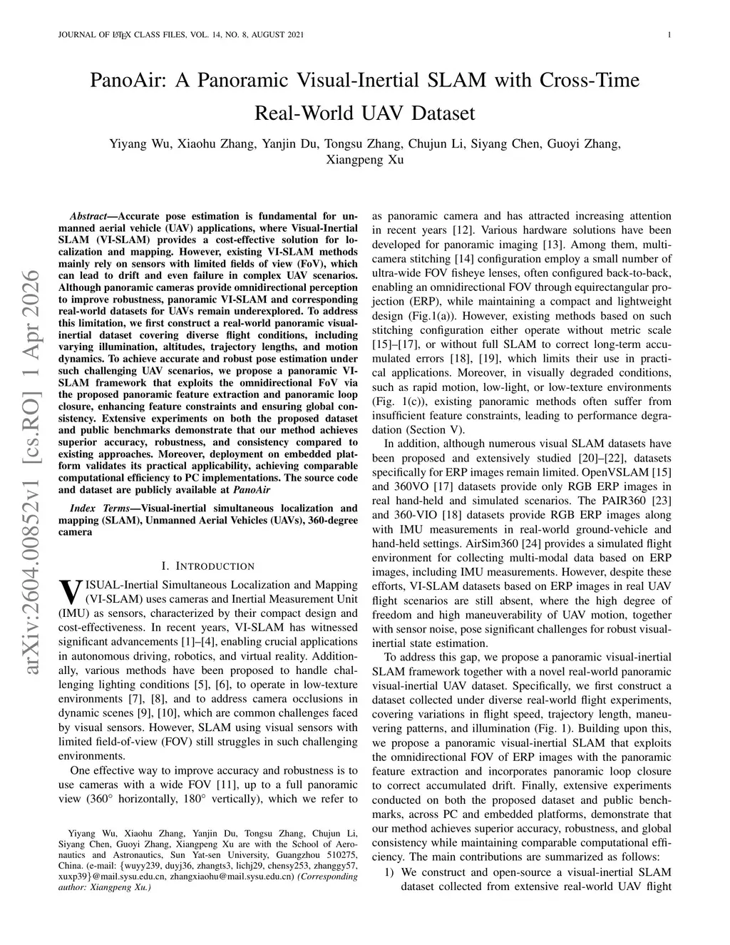 PanoAir: A Panoramic Visual-Inertial SLAM with Cross-Time Real-World UAV Dataset