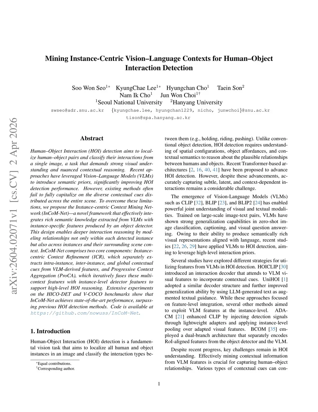 Mining Instance-Centric Vision-Language Contexts for Human-Object Interaction Detection