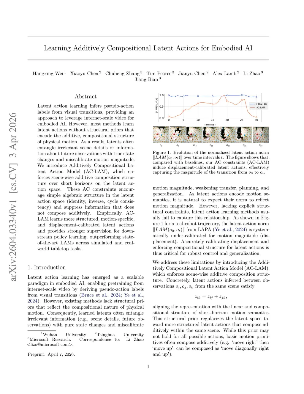 Learning Additively Compositional Latent Actions for Embodied AI