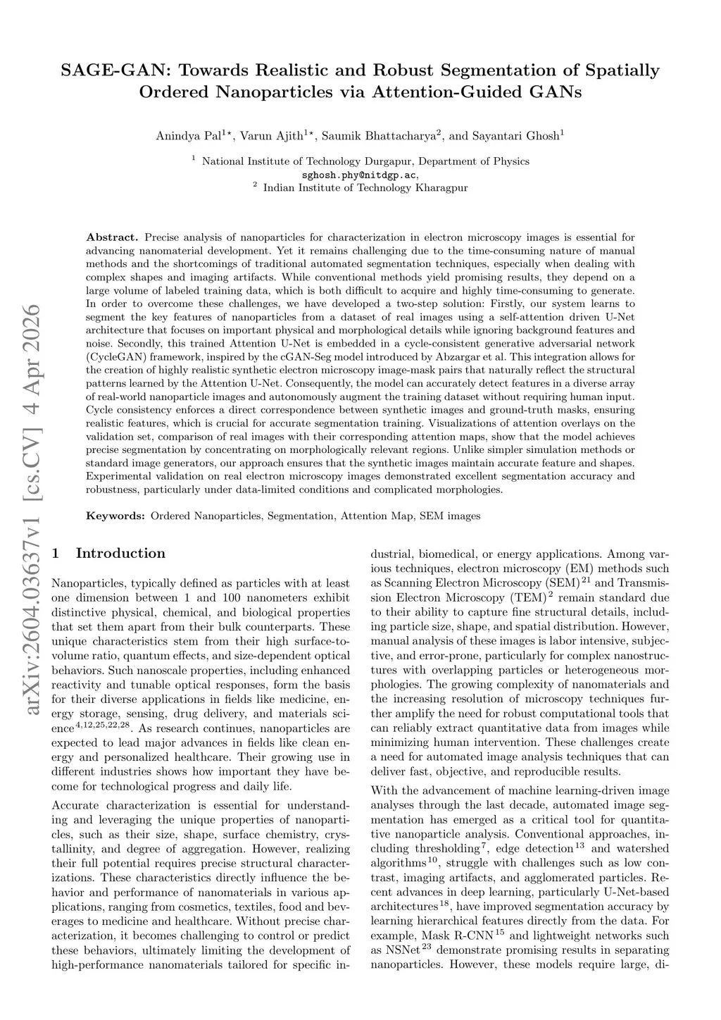 SAGE-GAN: Towards Realistic and Robust Segmentation of Spatially Ordered Nanoparticles via Attention-Guided GANs
