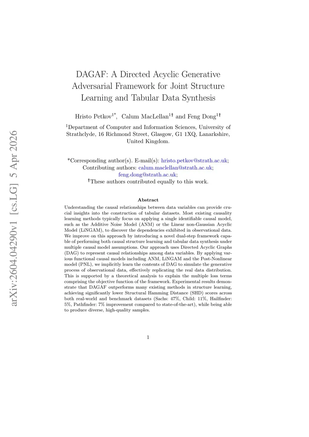 DAGAF: A directed acyclic generative adversarial framework for joint structure learning and tabular data synthesis
