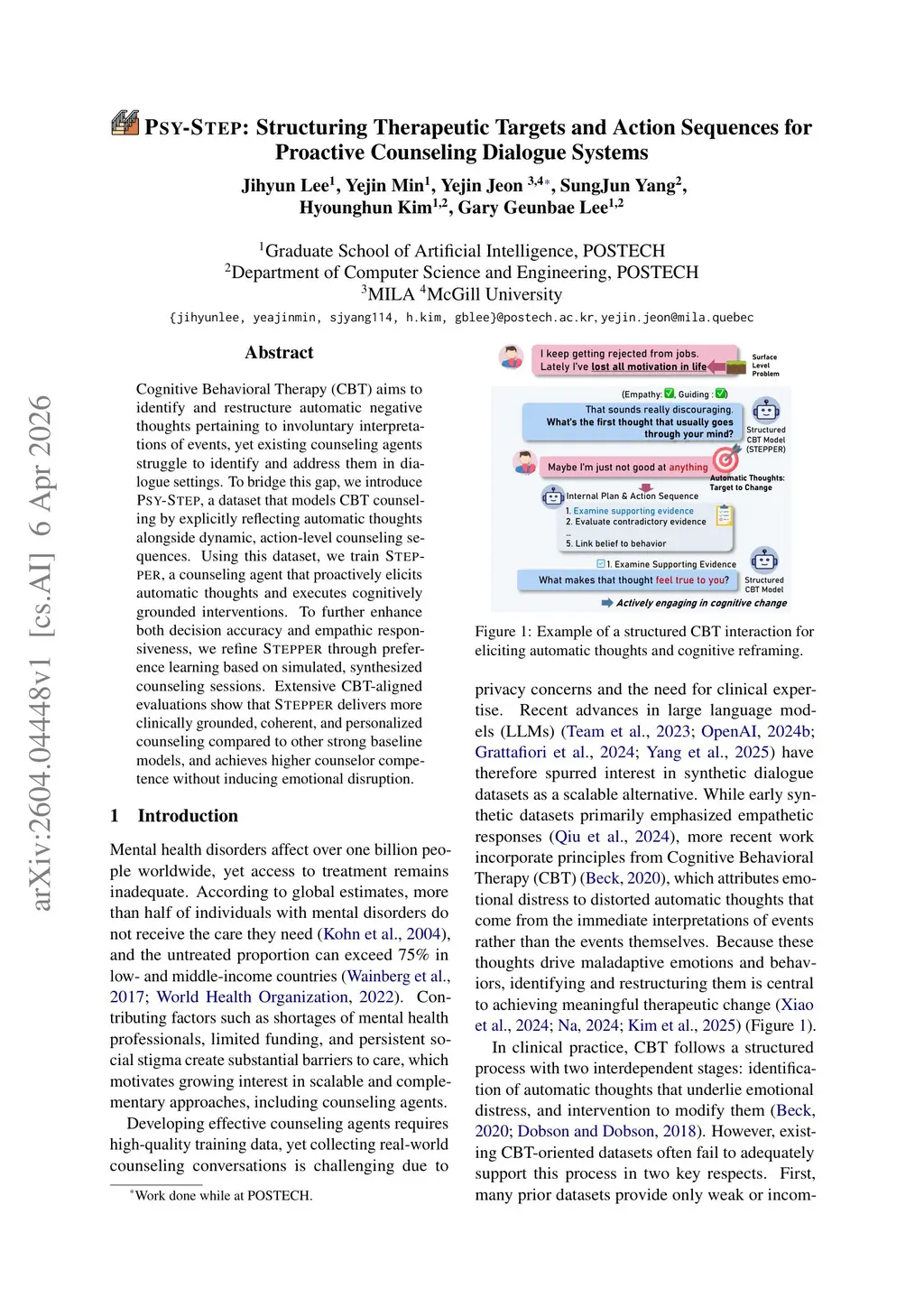 Cognitive Behavioral Therapy (CBT) aims to identify and restructure automatic negative thoughts pertaining to involuntary interpretations of events, yet existing counseling agents struggle to identify and address them in dialogue settings. To bridge this gap, we introduce STEP, a dataset that models CBT counseling by explicitly reflecting automatic thoughts alongside dynamic, action-level counseling sequences. Using this dataset, we train STEPPER, a counseling agent that proactively elicits automatic thoughts and executes cognitively grounded interventions. To further enhance both decision accuracy and empathic responsiveness, we refine STEPPER through preference learning based on simulated, synthesized counseling sessions. Extensive CBT-aligned evaluations show that STEPPER delivers more clinically grounded, coherent, and personalized counseling compared to other strong baseline models, and achieves higher counselor competence without inducing emotional disruption.
