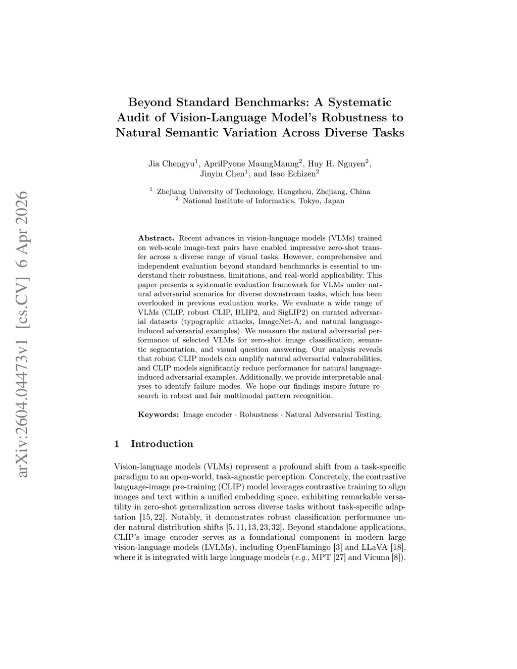 Recent advances in vision-language models (VLMs) trained on web-scale image-text pairs have enabled impressive zero-shot transfer across a diverse range of visual tasks. However, comprehensive and independent evaluation beyond standard benchmarks is essential to understand their robustness, limitations, and real-world applicability. This paper presents a systematic evaluation framework for VLMs under natural adversarial scenarios for diverse downstream tasks, which has been overlooked in previous evaluation works. We evaluate a wide range of VLMs (CLIP, robust CLIP, BLIP2, and SigLIP2) on curated adversarial datasets (typographic attacks, ImageNet-A, and natural language-induced adversarial examples). We measure the natural adversarial performance of selected VLMs for zero-shot image classification, semantic segmentation, and visual question answering. Our analysis reveals that robust CLIP models can amplify natural adversarial vulnerabilities, and CLIP models significantly reduce performance for natural language-induced adversarial examples. Additionally, we provide interpretable analyses to identify failure modes. We hope our findings inspire future research in robust and fair multimodal pattern recognition.