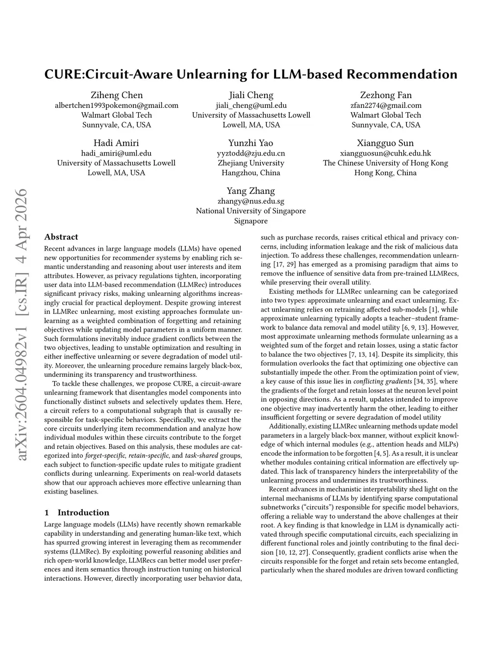 CURE:Circuit-Aware Unlearning for LLM-based Recommendation