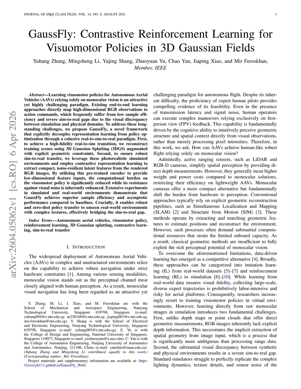 GaussFly: Contrastive Reinforcement Learning for Visuomotor Policies in 3D Gaussian Fields