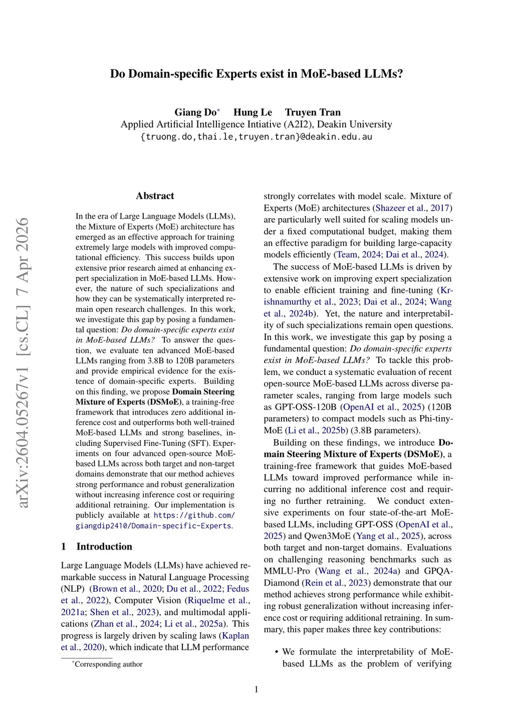 In the era of Large Language Models (LLMs), the Mixture of Experts (MoE) architecture has emerged as an effective approach for training extremely large models with improved computational efficiency. This success builds upon extensive prior research aimed at enhancing expert specialization in MoE-based LLMs. However, the nature of such specializations and how they can be systematically interpreted remain open research challenges. In this work, we investigate this gap by posing a fundamental question: \textit{Do domain-specific experts exist in MoE-based LLMs?} To answer the question, we evaluate ten advanced MoE-based LLMs ranging from 3.8B to 120B parameters and provide empirical evidence for the existence of domain-specific experts. Building on this finding, we propose \textbf{Domain Steering Mixture of Experts (DSMoE)}, a training-free framework that introduces zero additional inference cost and outperforms both well-trained MoE-based LLMs and strong baselines, including Supervised Fine-Tuning (SFT). Experiments on four advanced open-source MoE-based LLMs across both target and non-target domains demonstrate that our method achieves strong performance and robust generalization without increasing inference cost or requiring additional retraining. Our implementation is publicly available atthis https URL.