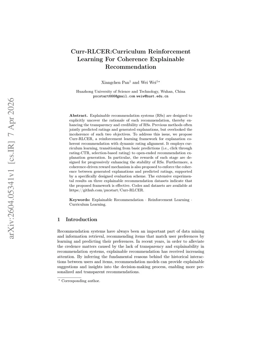 Curr-RLCER:Curriculum Reinforcement Learning For Coherence Explainable Recommendation