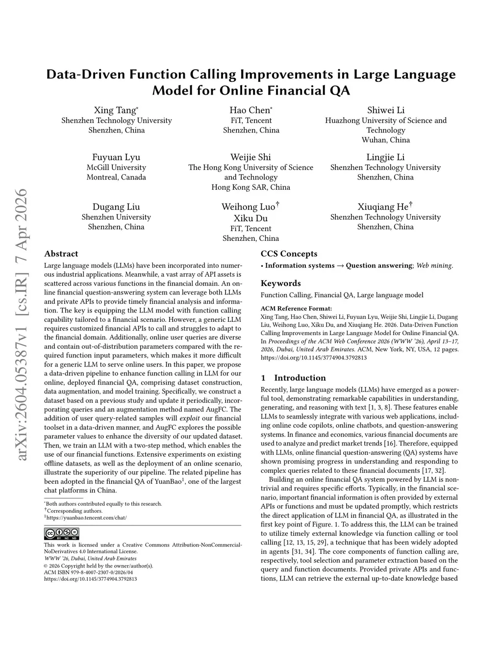 Data-Driven Function Calling Improvements in Large Language Model for Online Financial QA