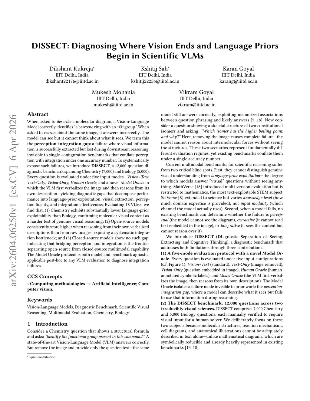 DISSECT: Diagnosing Where Vision Ends and Language Priors Begin in Scientific VLMs