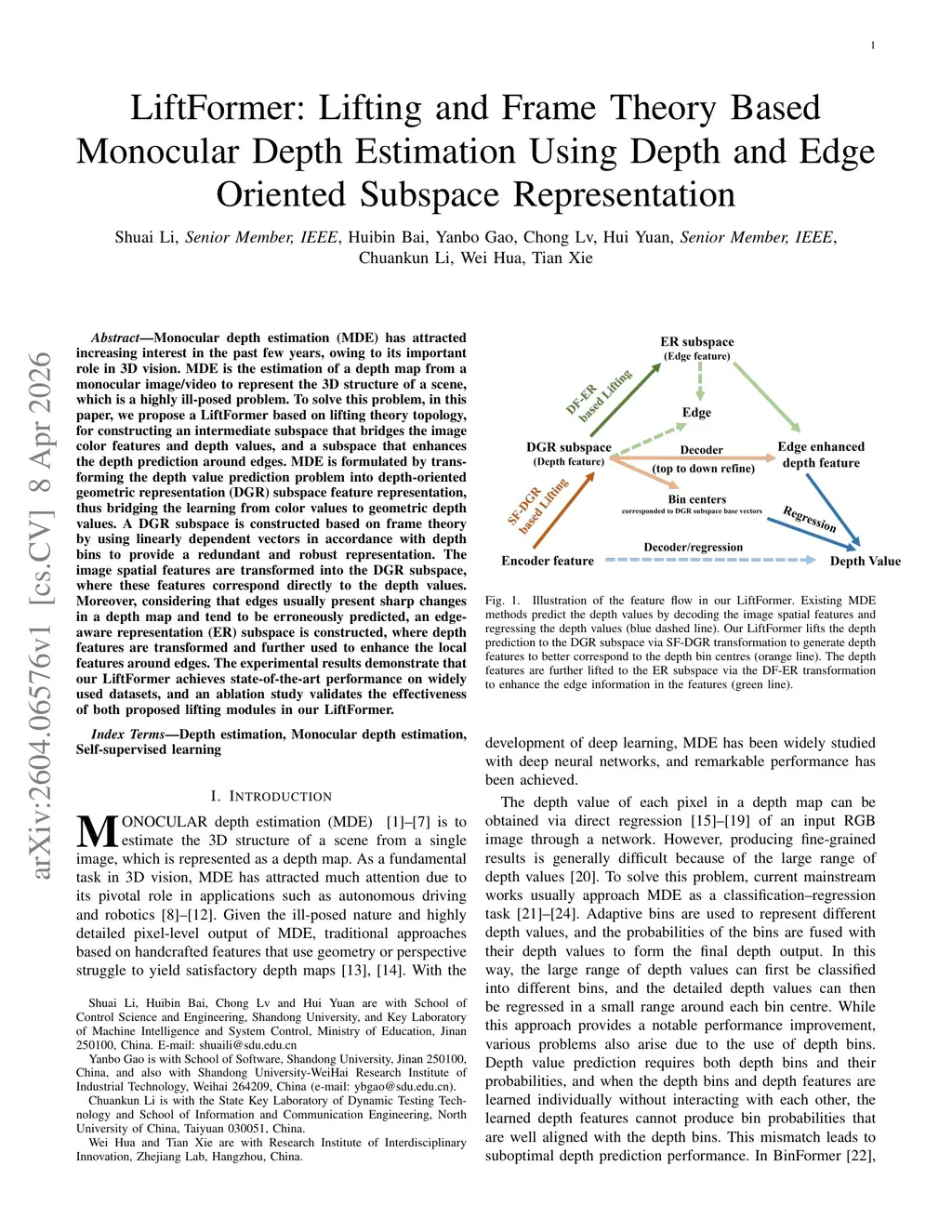 LiftFormer: Lifting and Frame Theory Based Monocular Depth Estimation Using Depth and Edge Oriented Subspace Representation