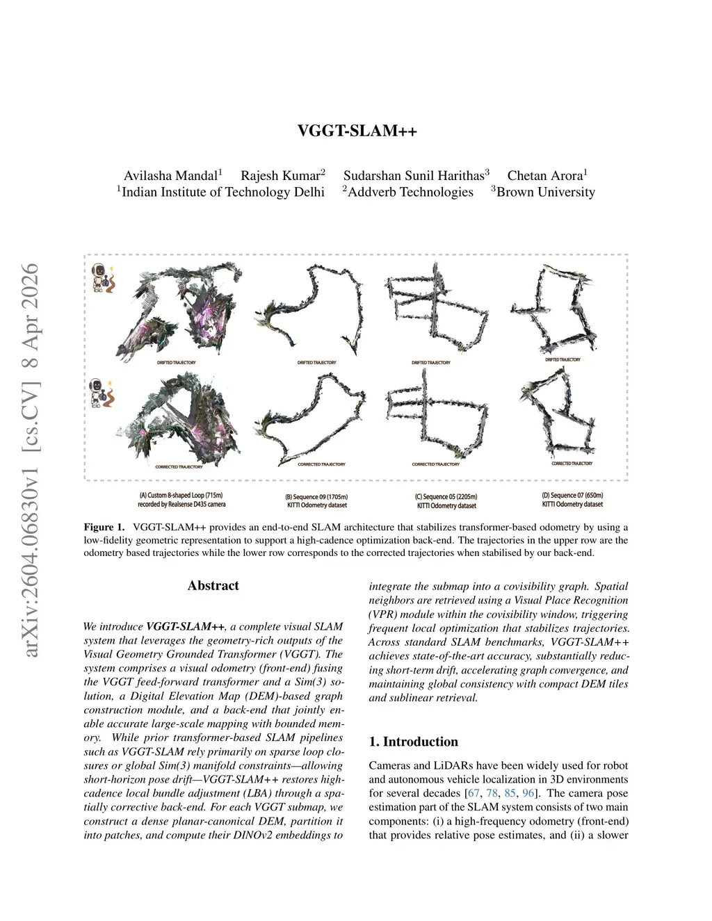 We introduce VGGT-SLAM++, a complete visual SLAM system that leverages the geometry-rich outputs of the Visual Geometry Grounded Transformer (VGGT). The system comprises a visual odometry (front-end) fusing the VGGT feed-forward transformer and a Sim(3) solution, a Digital Elevation Map (DEM)-based graph construction module, and a back-end that jointly enable accurate large-scale mapping with bounded memory. While prior transformer-based SLAM pipelines such as VGGT-SLAM rely primarily on sparse loop closures or global Sim(3) manifold constraints - allowing short-horizon pose drift - VGGT-SLAM++ restores high-cadence local bundle adjustment (LBA) through a spatially corrective back-end. For each VGGT submap, we construct a dense planar-canonical DEM, partition it into patches, and compute their DINOv2 embeddings to integrate the submap into a covisibility graph. Spatial neighbors are retrieved using a Visual Place Recognition (VPR) module within the covisibility window, triggering frequent local optimization that stabilizes trajectories. Across standard SLAM benchmarks, VGGT-SLAM++ achieves state-of-the-art accuracy, substantially reducing short-term drift, accelerating graph convergence, and maintaining global consistency with compact DEM tiles and sublinear retrieval.