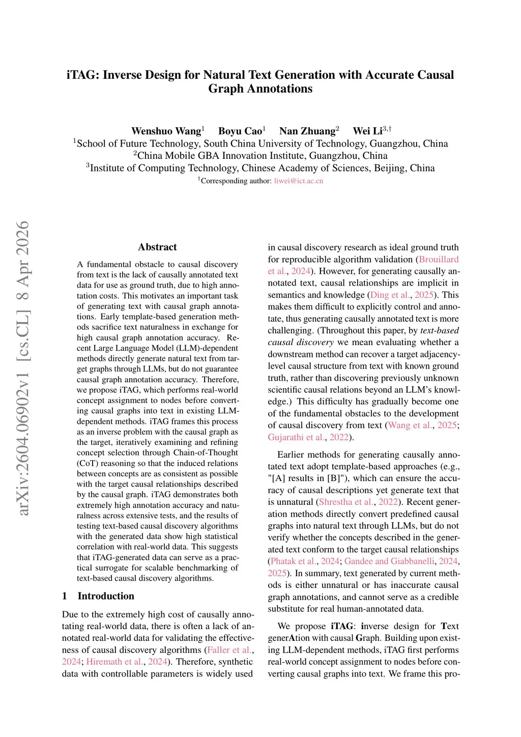 iTAG: Inverse Design for Natural Text Generation with Accurate Causal Graph Annotations
