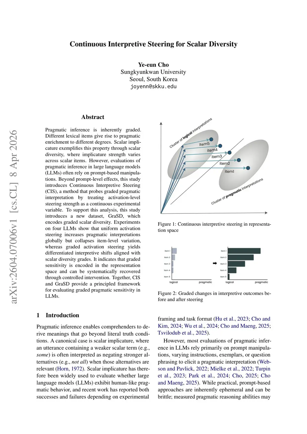 Pragmatic inference is inherently graded. Different lexical items give rise to pragmatic enrichment to different degrees. Scalar implicature exemplifies this property through scalar diversity, where implicature strength varies across scalar items. However, evaluations of pragmatic inference in large language models (LLMs) often rely on prompt-based manipulations. Beyond prompt-level effects, this study introduces Continuous Interpretive Steering (CIS), a method that probes graded pragmatic interpretation by treating activation-level steering strength as a continuous experimental variable. To support this analysis, this study introduces a new dataset, GraSD, which encodes graded scalar diversity. Experiments on four LLMs show that uniform activation steering increases pragmatic interpretations globally but collapses item-level variation, whereas graded activation steering yields differentiated interpretive shifts aligned with scalar diversity grades. It indicates that graded sensitivity is encoded in the representation space and can be systematically recovered through controlled intervention. Together, CIS and GraSD provide a principled framework for evaluating graded pragmatic sensitivity in LLMs.