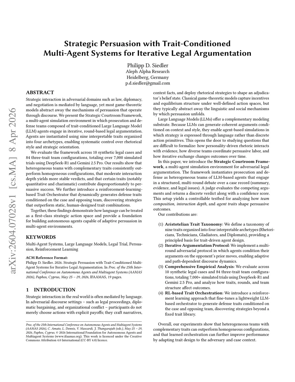 Strategic Persuasion with Trait-Conditioned Multi-Agent Systems for Iterative Legal Argumentation