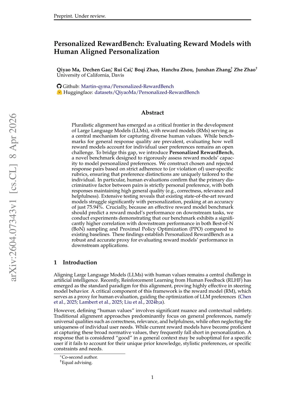 Pluralistic alignment has emerged as a critical frontier in the development of Large Language Models (LLMs), with reward models (RMs) serving as a central mechanism for capturing diverse human values. While benchmarks for general response quality are prevalent, evaluating how well reward models account for individual user preferences remains an open challenge. To bridge this gap, we introduce Personalized RewardBench, a novel benchmark designed to rigorously assess reward models' capacity to model personalized preferences. We construct chosen and rejected response pairs based on strict adherence to (or violation of) user-specific rubrics, ensuring that preference distinctions are uniquely tailored to the individual. In particular, human evaluations confirm that the primary discriminative factor between pairs is strictly personal preference, with both responses maintaining high general quality (e.g., correctness, relevance and helpfulness). Extensive testing reveals that existing state-of-the-art reward models struggle significantly with personalization, peaking at an accuracy of just 75.94%. Crucially, because an effective reward model benchmark should predict a reward model's performance on downstream tasks, we conduct experiments demonstrating that our benchmark exhibits a significantly higher correlation with downstream performance in both Best-of-N (BoN) sampling and Proximal Policy Optimization (PPO) compared to existing baselines. These findings establish Personalized RewardBench as a robust and accurate proxy for evaluating reward models' performance in downstream applications.