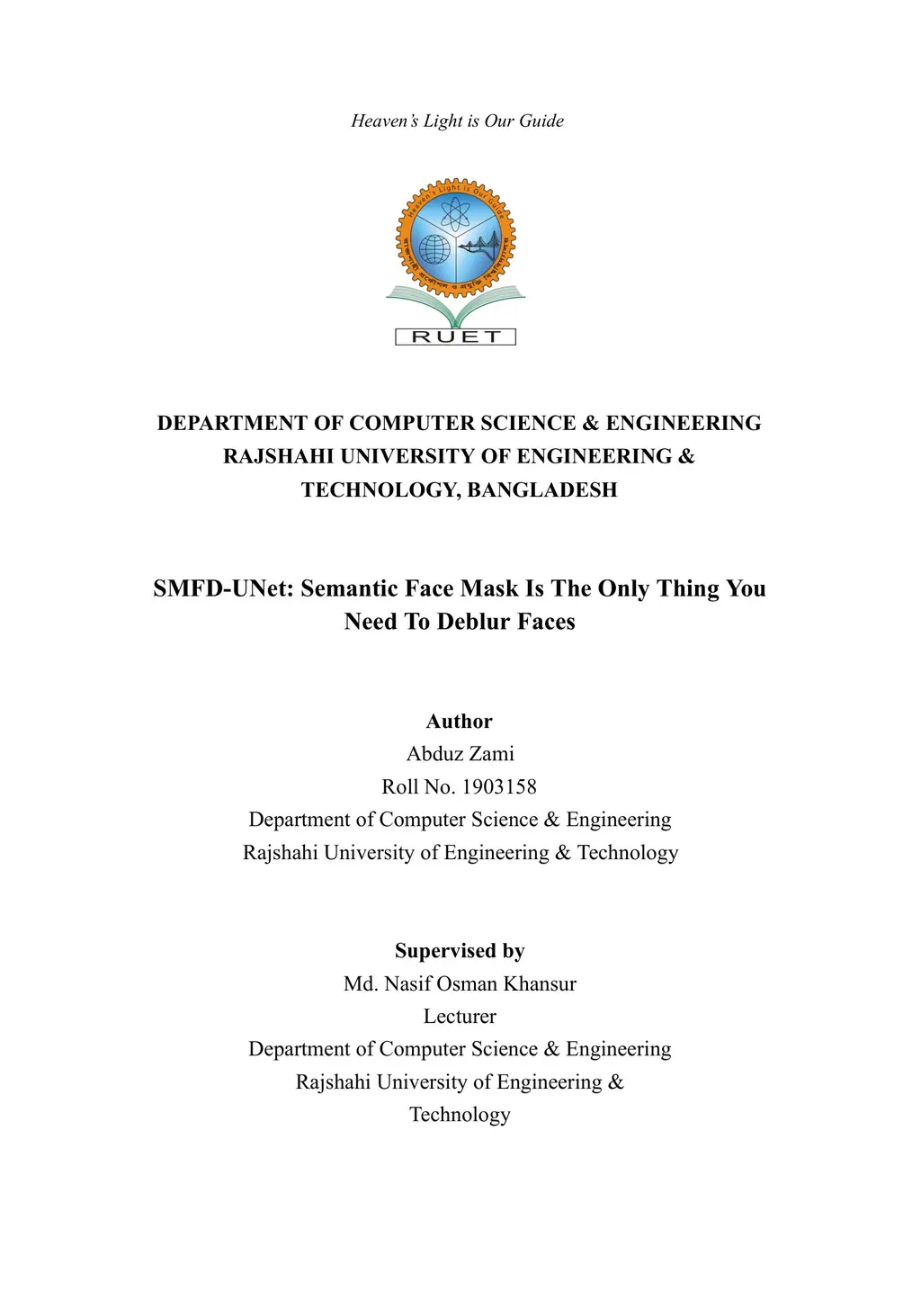 SMFD-UNet: Semantic Face Mask Is The Only Thing You Need To Deblur Faces