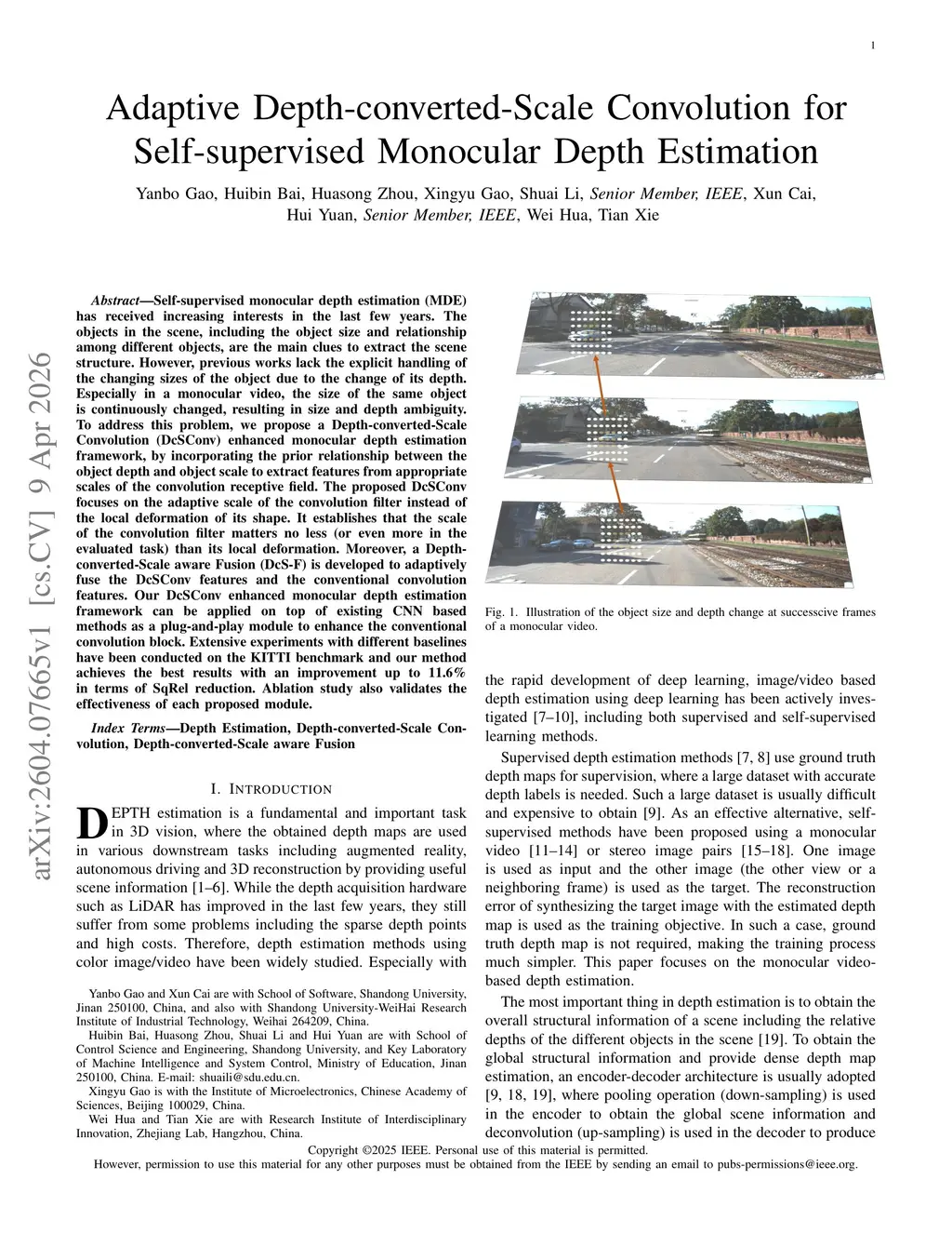 Adaptive Depth-converted-Scale Convolution for Self-supervised Monocular Depth Estimation