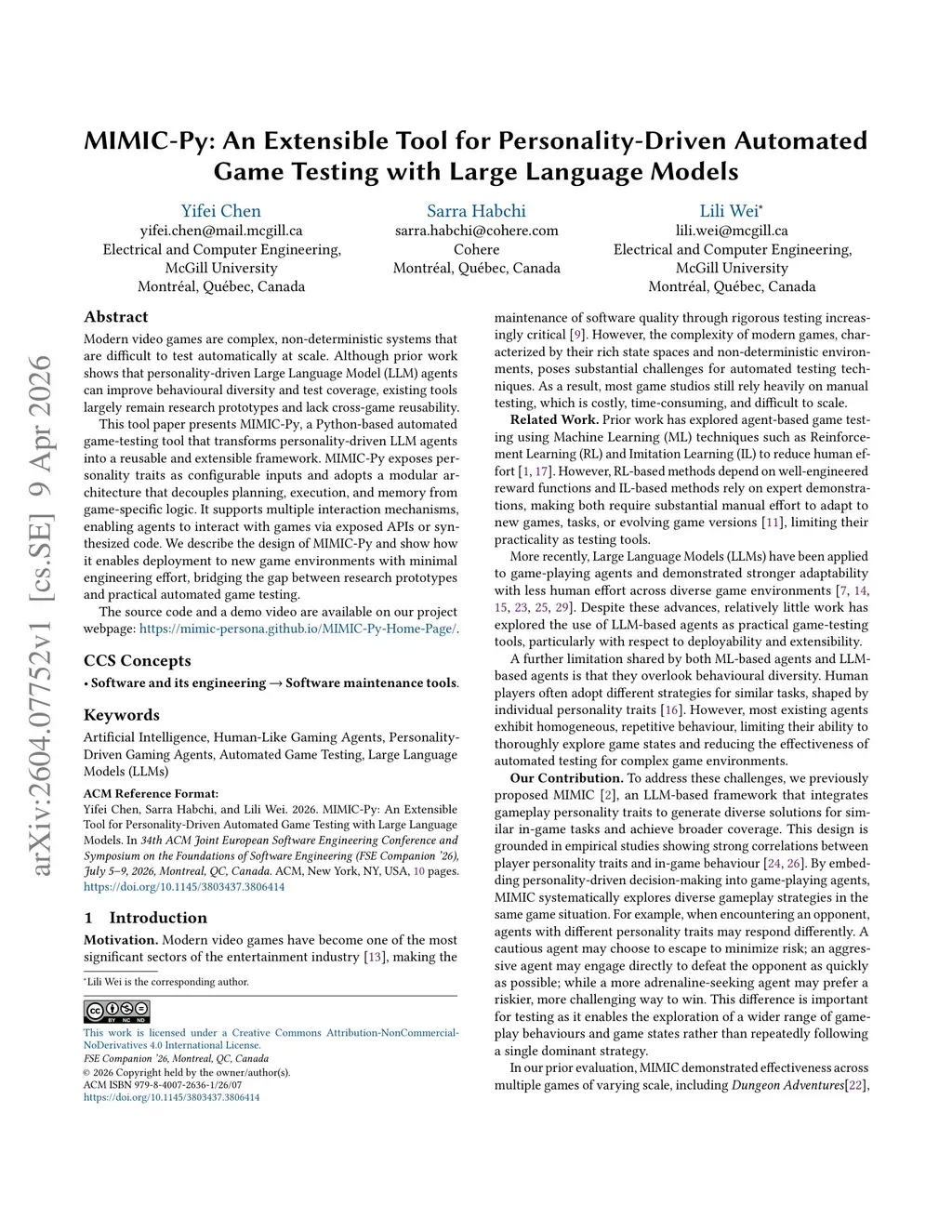 MIMIC-Py: An Extensible Tool for Personality-Driven Automated Game Testing with Large Language Models