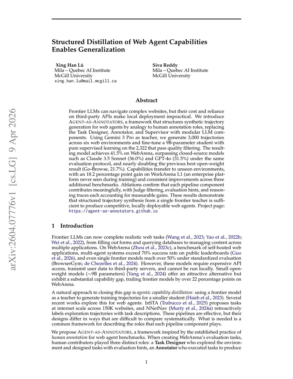 Structured Distillation of Web Agent Capabilities Enables Generalization