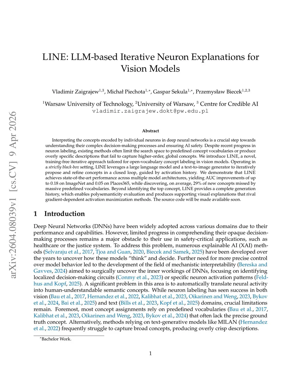 LINE: LLM-based Iterative Neuron Explanations for Vision Models