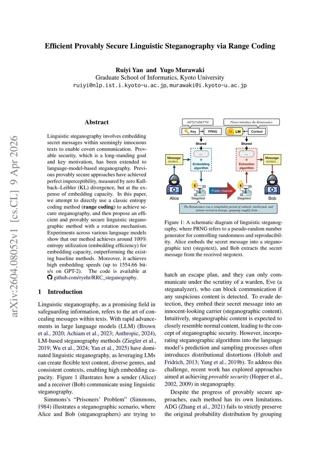 Efficient Provably Secure Linguistic Steganography via Range Coding