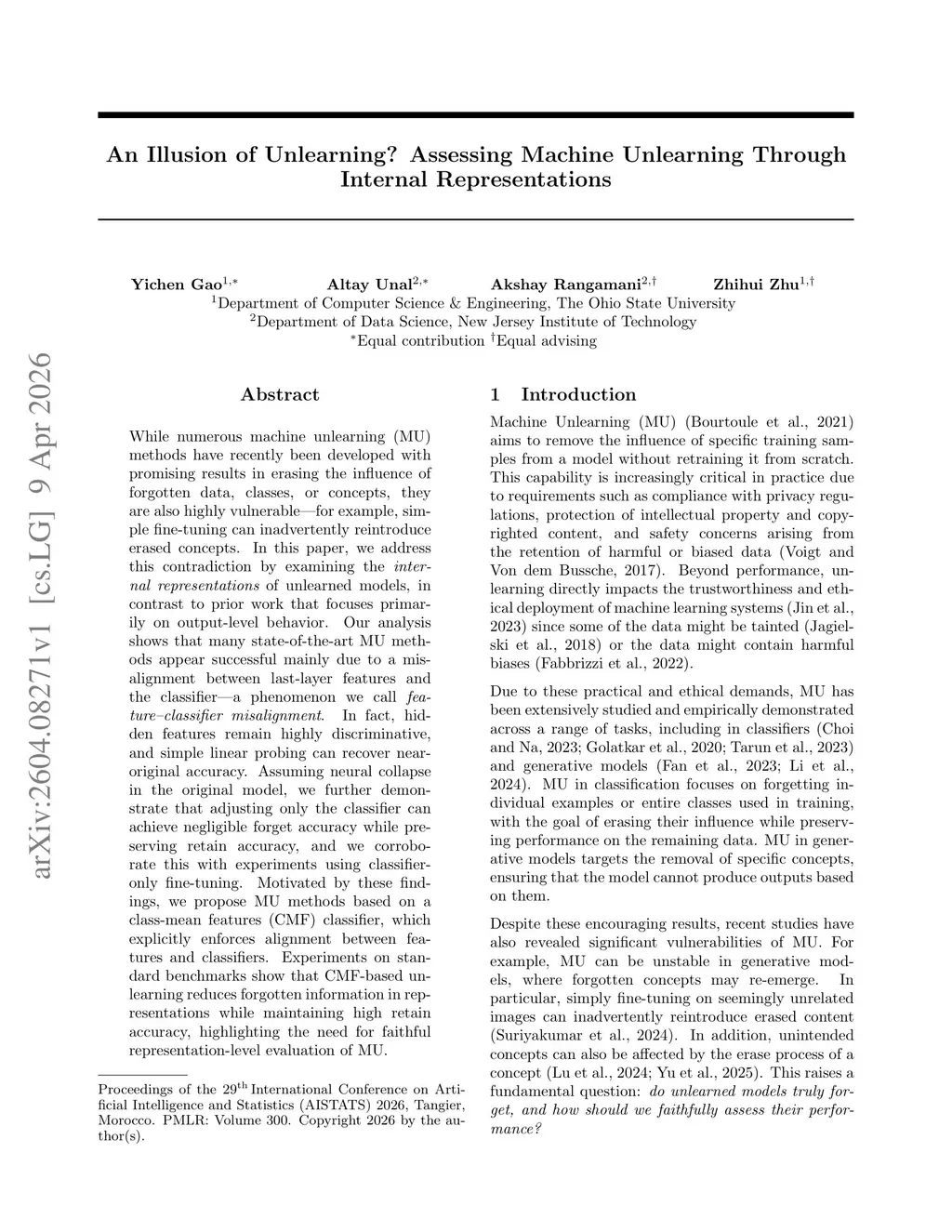 While numerous machine unlearning (MU) methods have recently been developed with promising results in erasing the influence of forgotten data, classes, or concepts, they are also highly vulnerable-for example, simple fine-tuning can inadvertently reintroduce erased concepts. In this paper, we address this contradiction by examining the internal representations of unlearned models, in contrast to prior work that focuses primarily on output-level behavior. Our analysis shows that many state-of-the-art MU methods appear successful mainly due to a misalignment between last-layer features and the classifier, a phenomenon we call feature-classifier misalignment. In fact, hidden features remain highly discriminative, and simple linear probing can recover near-original accuracy. Assuming neural collapse in the original model, we further demonstrate that adjusting only the classifier can achieve negligible forget accuracy while preserving retain accuracy, and we corroborate this with experiments using classifier-only fine-tuning. Motivated by these findings, we propose MU methods based on a class-mean features (CMF) classifier, which explicitly enforces alignment between features and classifiers. Experiments on standard benchmarks show that CMF-based unlearning reduces forgotten information in representations while maintaining high retain accuracy, highlighting the need for faithful representation-level evaluation of MU.
